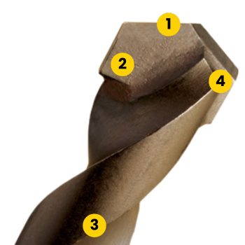 2.Trwała końcówka z węglika tytanu, zapewniająca dużą odporność przy wierceniu udarowym.